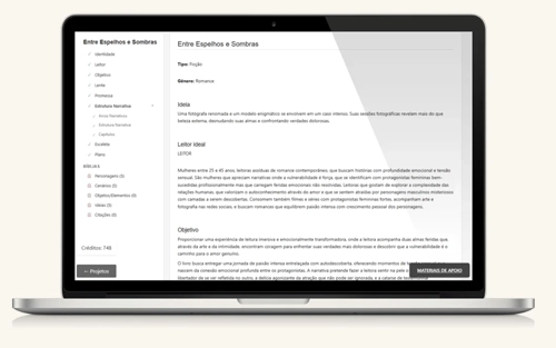 O Sistema Interativo Que Transforma Sua Ideia Em Um Plano Completo de Ficção. Sem Estudar Teoria Narrativa.